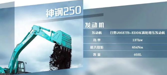 神鋼SK250采用了日野J05ETB-EDDK渦輪增壓發動機,同時安裝了大容量水冷EGR裝置,大大提升了燃油的燃燒功率和節油性能。